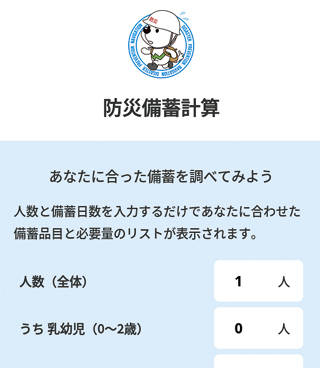 和歌山県「防災備蓄計算」サイトより https://wakayama.bousai.linksmart.jp/contents/bichiku/index.html