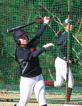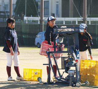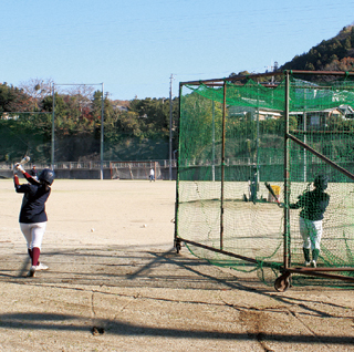 「オーラーイ!」12月6日、朝の澄んだ空気のグラウンドに響くかけ声と打球音。打撃ケージで交替に打撃練習し、打球を部員一人で追います。ひとしきり打ったあと、グラウンドのあちこちに散乱するボールを、部員全員と近所のボランティアの方でカゴに入れていきます。「みんなほんまにがんばってるさかい。球拾いする人なかったら大変やん(ボランティアの方)」 現在の部員は2年生が2人と1年生が1人。2年生の2人は部の一期生で、2人とも海南高校に女子野球部ができなければ「県外の学校に進んでいた」と言います。1年生の部員は小学校で野球をしていたものの、中学では陸上をしていたとか。しかし女子野球部ができたため、高校では野球をすることにしたとのことです。 3人のため、実戦的な練習など難しい部分もあります。「試合に参加した時に課題を出して練習していくんですけど、なかなか難しいところはありますね。他の野手がいると想定しながら練習したりしています(東浦監督)」10月からは、男子の硬式野球部との合同練習も行っているとのこと。大会には、県外の学校と合同チームを組んで参加しています。 (1) (2)