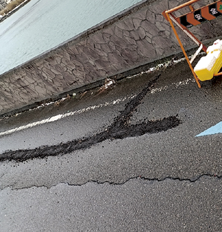 昨年からひび割れにより、片側通行が続いている有田市箕島の通称「かもめ通り」(国道480号)。昨年12月、道路のひび割れ拡大を受けて、全面通行止めにした上で緊急工事が行われました。 県の有田振興局建設部によると、工事は昨年12月23日から実施。当初は5日間程度を予定していましたが、作業が早く進んだため25日までの3日間で終了したということです。 同建設部によると、ひび割れが見つかって以降経過観察を行っていました。しかし最近になってその規模が拡大する傾向が見られたことから、緊急的な対応が必要と判断したとしています。 今回の工事では、ひび割れの進行を抑えるために護岸部分に袋詰めの玉石を設置するなど、応急的な対策が取られました。同建設部では「放置すれば危険性が高まる状況だった」と説明しています。 ただこの対応はあくまで応急措置であり、今後は抜本的な対策が必要になる見込みです。具体的にどのような工事を行うかについては検討中で、予算が確保でき次第、できるだけ早く着手したいとしています。 本格的な補強工事を行う場合は、施工のタイミングによっては今回のような全面通行止めが再び発生する可能性もあるとのこと。ただし工事の内容や規模によって状況は変わるため、「現段階では確定的なことは申し上げられない」としています。 参考=有田市メール「国道480号(かもめ通り)工事に伴う全面通行止めのお知らせ」(https://plus.sugumail.com/usr/arida/doc/1086672)/Arikaina 2025/2「有田市で『陥没の恐れあり』として、道路が片側通行に」(https://arikaina.com/_article/202502/sinkhole-1.html)