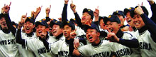 1月23日(金)午後3時40分頃。報道陣でごった返す箕島高校の校長室に、待望の電話が。18年ぶりとなる甲子園出場が決まった瞬間、駆け付けていた野球部OBでもある有田市の望月市長をはじめ、関係者から大きな拍手が沸き起こりました。グラウンドで吉報を聞いた野球部の選手・監督は、その後約1時間ほど取材ぜめに。その間にも学校や市役所には出場を祝う垂れ幕が早々と掲げられ、祝賀ムードを盛り上げました。
