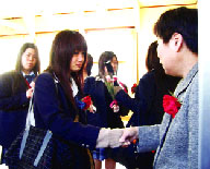 | 大勢の先輩に見送られ、最後の卒業生が旅立ち |