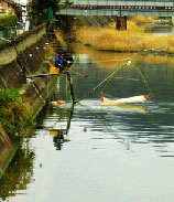 湯浅に春を告げるシロウオ漁。毎年2月中旬〜3月下旬にかけ、古くから伝わる「四つ手網」と呼ばれる四角形の網で川に遡上してきたシロウオを捕る姿は、地域の春の風物詩として知られています。
