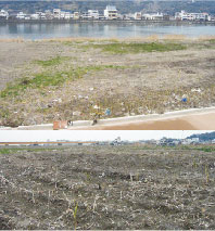 ▼有田振興局、遊歩道工事で重要湿地の葦(あし)をなぎ倒し