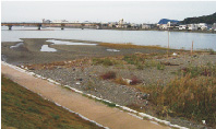 ▼有田川河口の重要湿地 湿地に緑戻らず