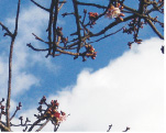 ▼今年も開花 JR冷水浦駅の早咲き桜