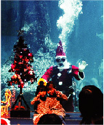 ▼サンタが大水槽にやってくる