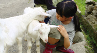 ▼清水「かんじゃ山椒園」のヤギの赤ちゃんが人気者に
