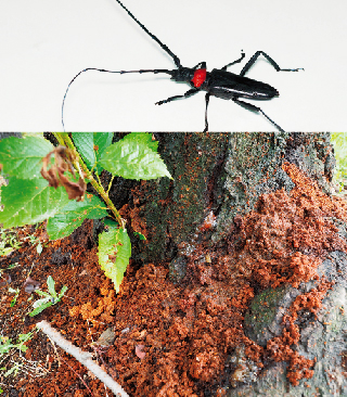 ▼樹木の天敵・クビアカツヤカミキリ 県が注意呼びかけ