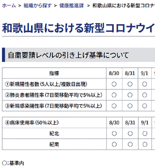 ▼県がホームページで「自粛要請レベルの引き上げ基準」を掲載開始…するものの、中身は「◯か×」だけ