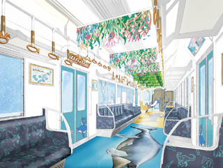 ▼特別展にロゴに電車の床に…この夏大活躍!ワカヤマソウリュウ
