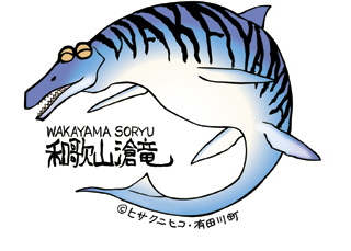 有田川町で化石が発見された、海の巨大は虫類・モササウルス類の化石。昨年12月には県立自然博物館により新種であることが発表され、「ワカヤマソウリュウ」という愛称が付けられました。4月には模型業界で有名な(株)海洋堂のグループ会社が、全身復元模型を製作することが決定。さらに全身骨格標本の製作も決まり、ロゴマークも作成され、電車にも登場。太古の"海の王者"を地域振興に活用しようと、さまざまな取り組みが進められています。