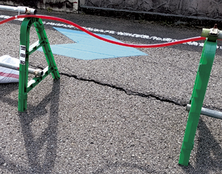 ▼有田市で「陥没の恐れあり」として、道路が片側通行に